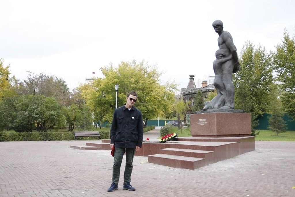 В Красноярске на площадь Революции вышел один журналист Дмитрий Полушин и вел оттуда стрим для YouTube.