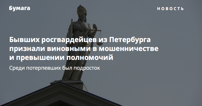 Бывших росгвардейцев из Петербурга признали виновными в мошенничестве и превышении полномочий