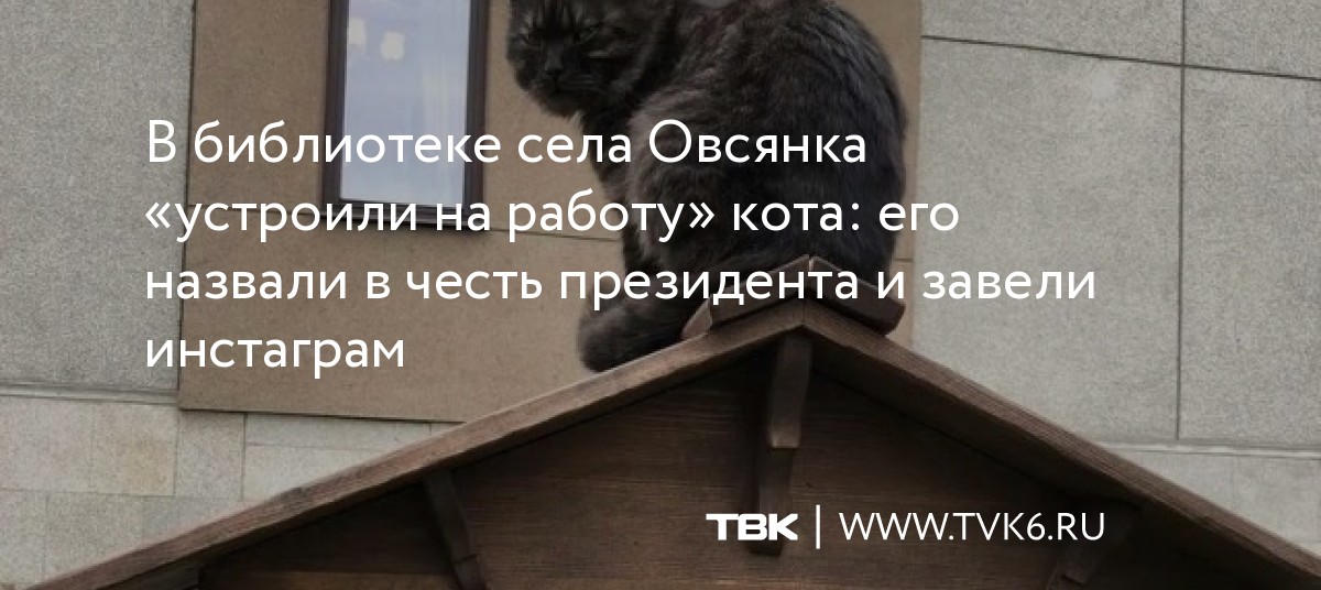В библиотеке села Овсянка «устроили на работу» кота: его назвали в честь президента и завели инстаграм