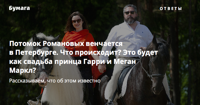 «Бумага» отвечает на основные вопросы о предстоящем венчании (кроме платья невесты — про это мы ничего не знаем). Читайте, кем Георгий Романов приходится российским императорам, будет ли свадьба такой же торжественной, как у принца Гарри и Меган Маркл, и какие места в Петербурге посетят молодожены.