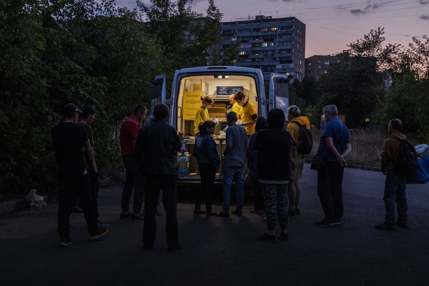 В первый раз я записалась на «ночной автобус» — это гуманитарный проект «Ночлежки», который существует уже много лет. Это такой микроавтобус, который каждый будний день курсирует по городу. Волонтеры раздают еду, разливают суп, помимо них еще дежурят медики. К этому автобусу приходят люди — не обязательно бездомные, они могут быть просто очень бедными. Помощь «Ночлежки» помогает им продержаться.