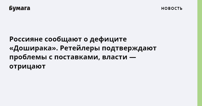 Первыми о пропаже «Доширака» из магазинов сообщили жители Красноярского края, вскоре после этого проблему с поставками подтвердили представители торговых сетей. Позднее о дефиците лапши стали рассказывать и в других регионах. Крупные торговые сети Красноярска сообщили «РИА Новости», что получили от производителя «Доширака» уведомления о возможном уменьшении поставок, но дефицита не ожидают. Представитель компании «Командор» рассказал, что поставщик предупредил об остановке производства на одном из заводов, из-за чего лапша будет поставляться не в полном объеме.