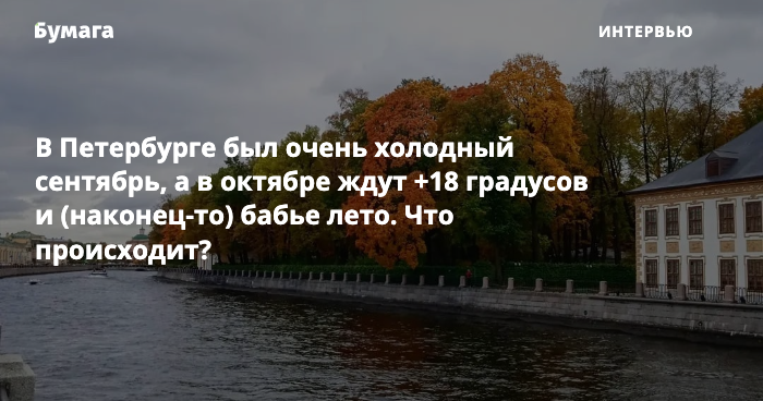 В прошлом году в этот же самый период в Петербурге стояла температура в районе 20–22 градусов. И в конце сентября, и в начале октября — разница в десять градусов достаточно большая. Поэтому [это были] скорее потуги бабьего лета.