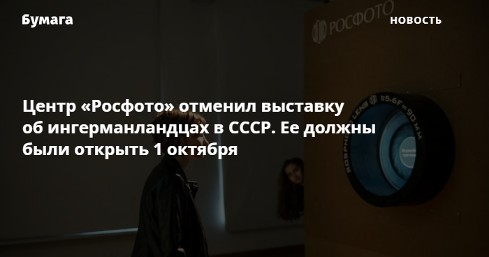 Музейный центр «Росфото» в последний момент отменил выставку о жизни ингерманландцев в СССР, сообщает финское издание Helsingin Sanomat. Экспозиция называлась «Ингерманландцы — забытые финны», ее должны были открыть 1 октября.
