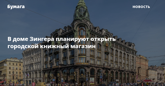 В доме Зингера планируют открыть городской книжный магазин