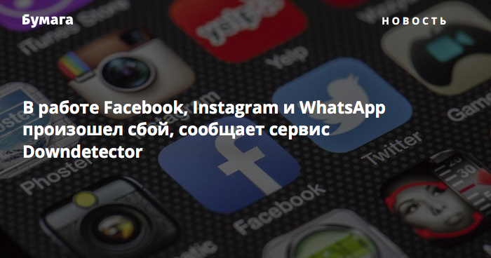 В работе Facebook, Instagram и WhatsApp произошел сбой, сообщает сервис Downdetector