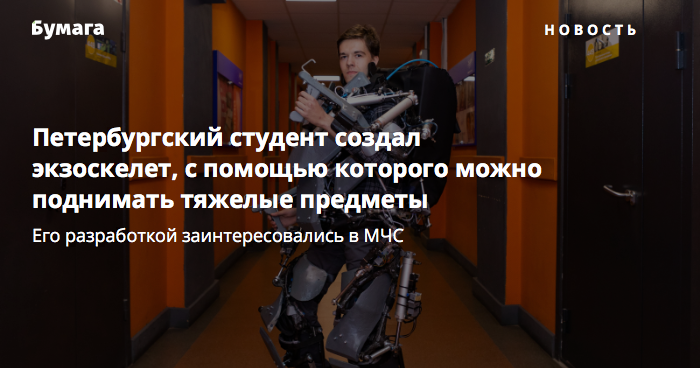 Петербургский студент создал экзоскелет, с помощью которого можно поднимать тяжелые предметы