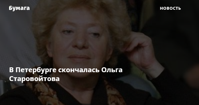 В Петербурге в ночь на 4 октября скончалась Ольга Старовойтова, рассказал политик Борис Вишневский. Причина смерти женщины не уточняется.