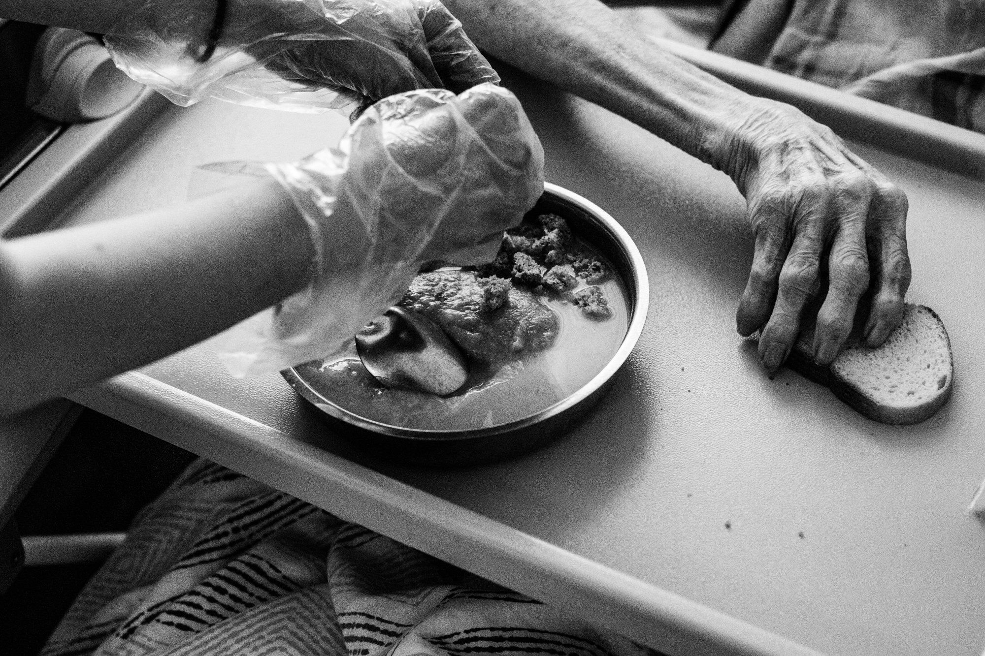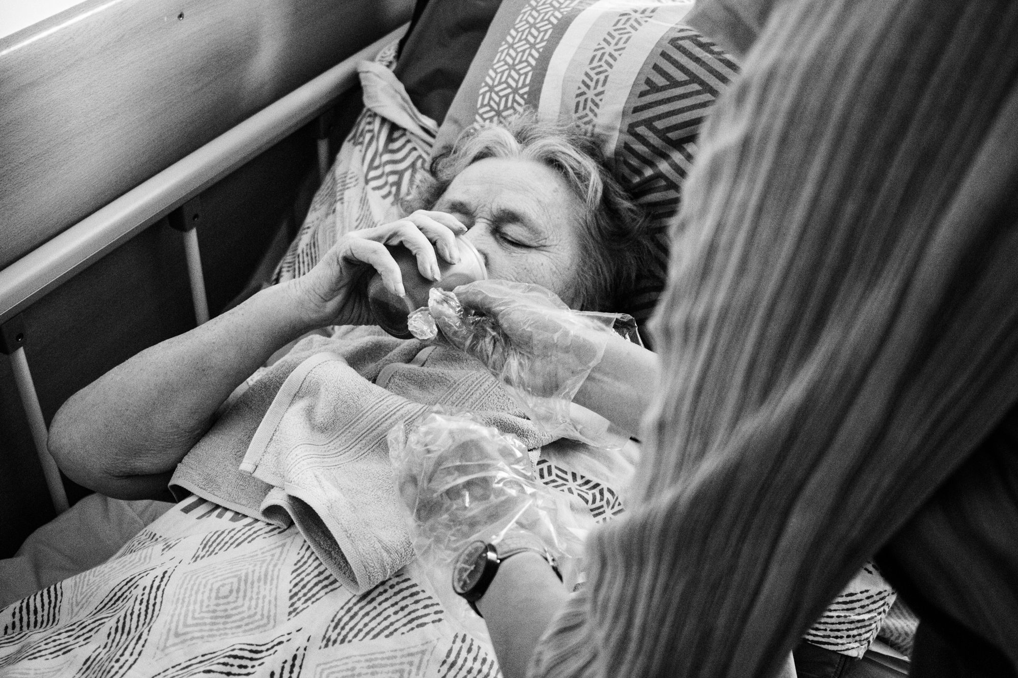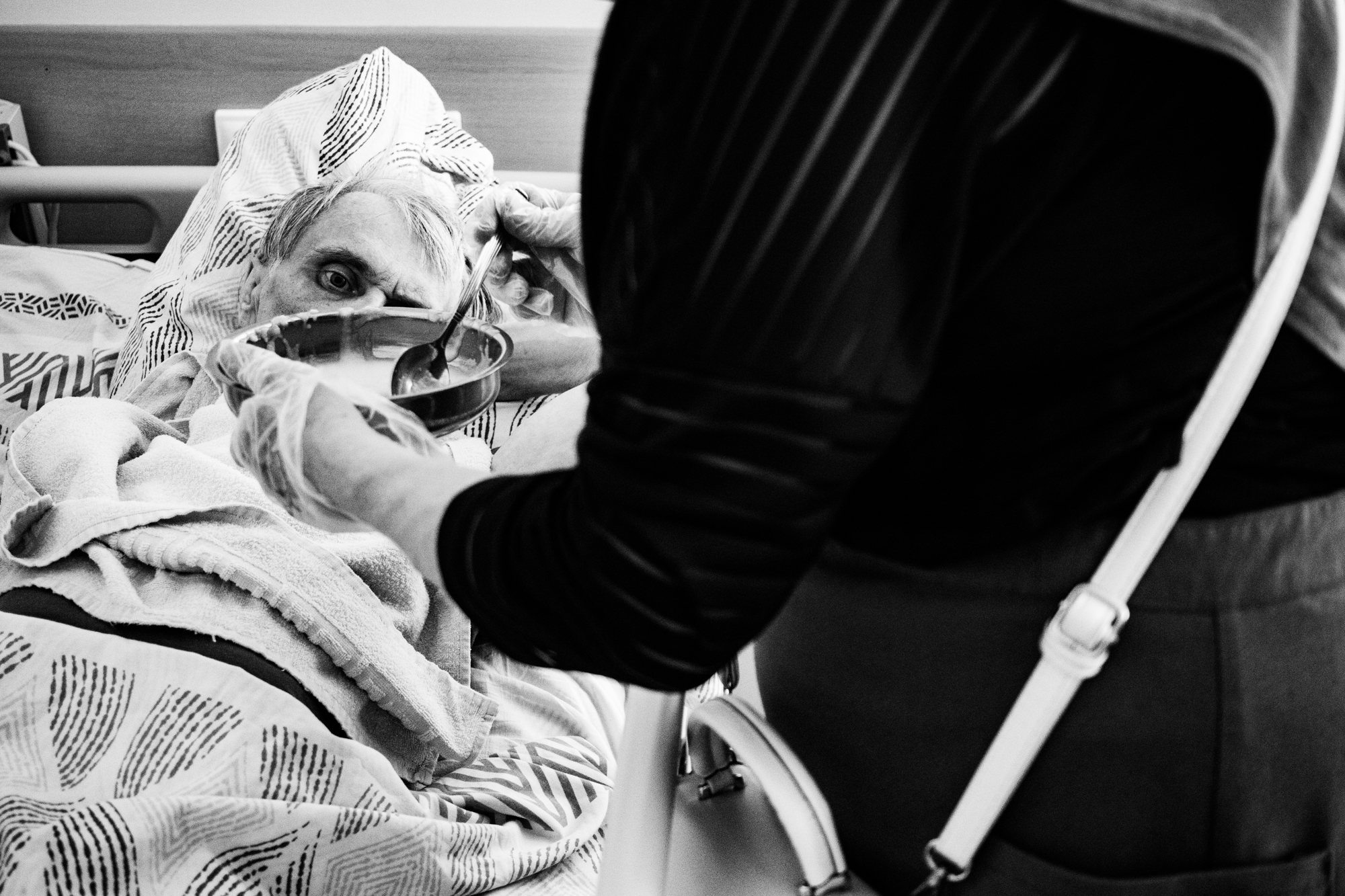 В хосписе сестры кормят пациентов специальной едой. Некоторые способны есть сами, но большинству требуется помощь