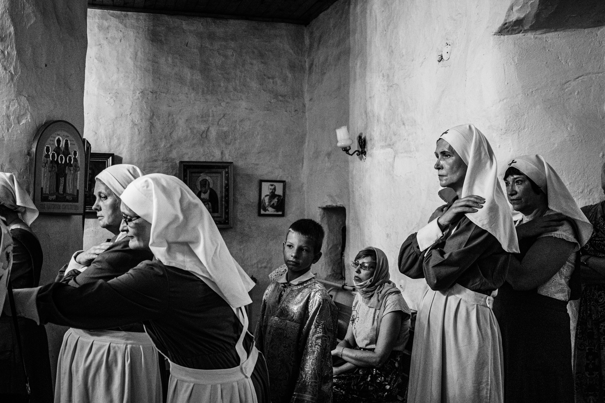 Сестры построились для причастия. На них надеты праздничные платья старинного образца — знак того, что сестра прошла испытательный срок для вступления в сестричество