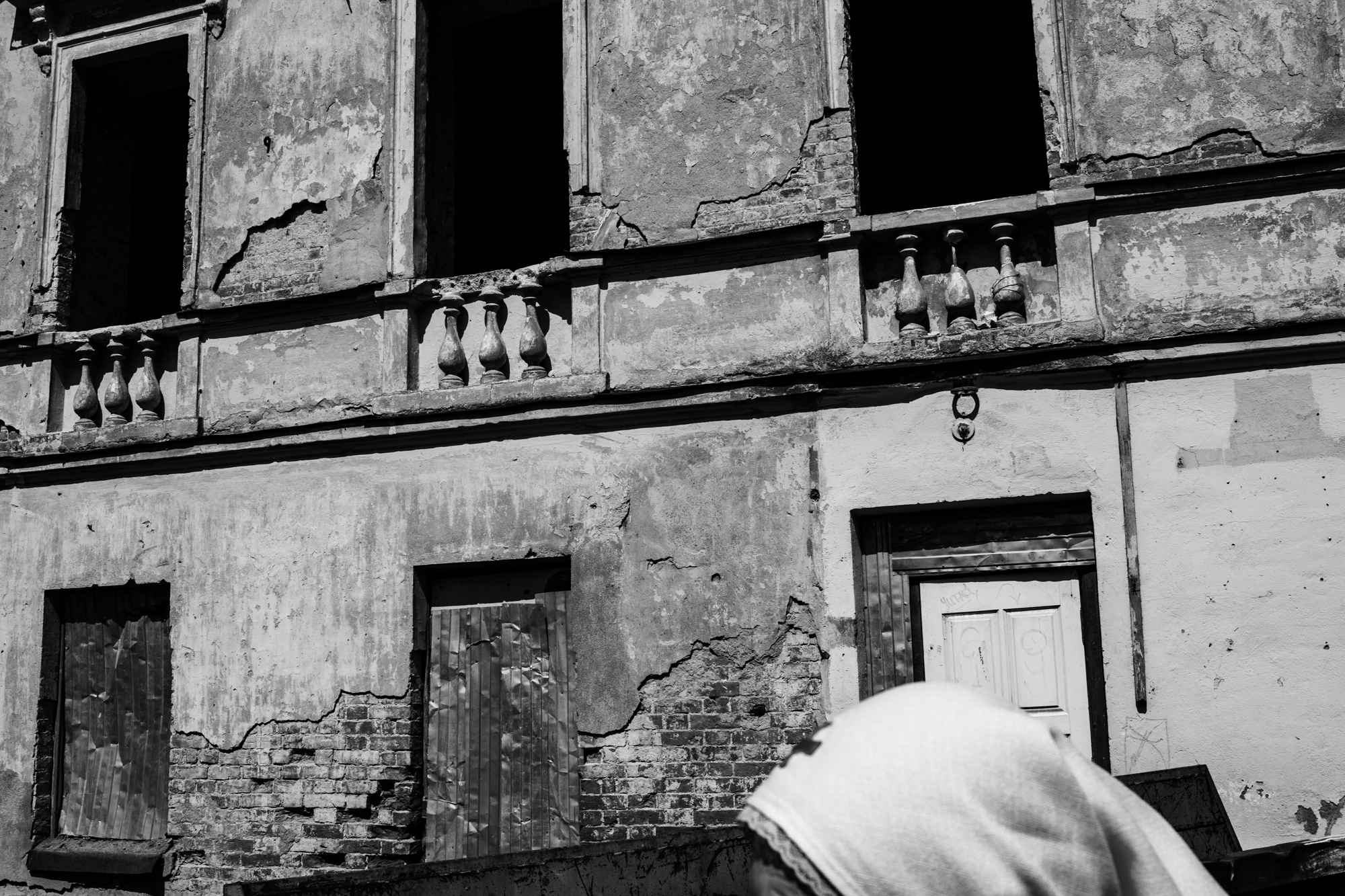 Сестра на фоне заброшенной богадельни. Храм, при котором образовано сестричество, раньше был монастырем, в который заезжала сама княгиня Елизавета. Отсюда и название сестричества