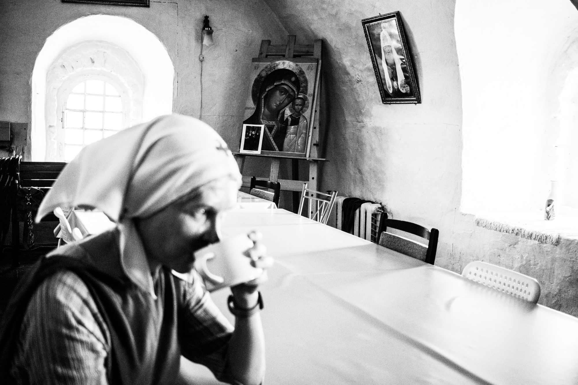 Сестра Фотиния отдыхает в трапезной храма после работы в хосписе. Здесь же проходят все собрания сестричества