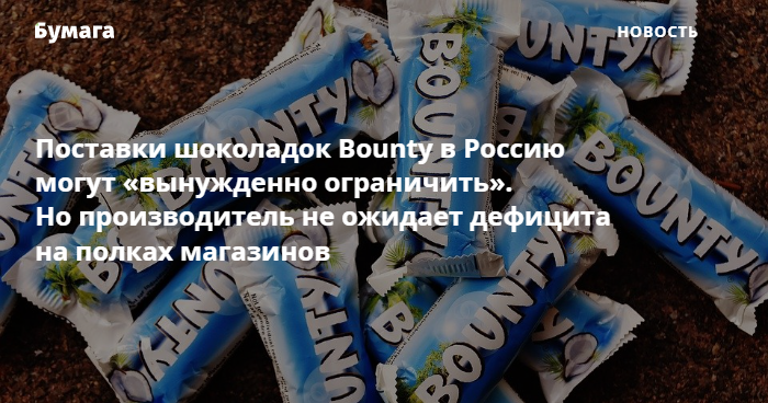 Mars предупредила об ограничении поставок Bounty