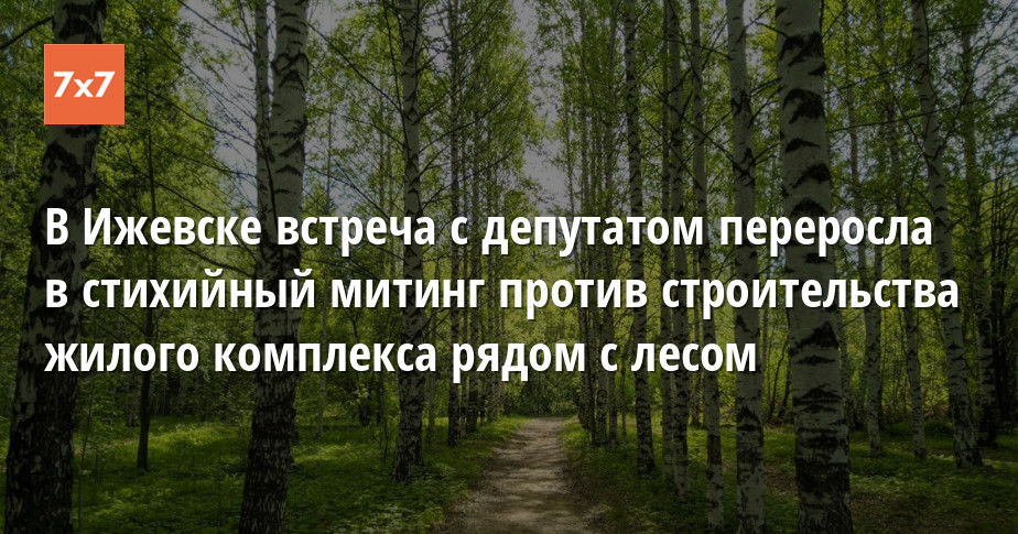 В Ижевске прошел стихийный митинг против строительства жилого комплекса рядом с Тимирязевским лесом. На нем выступил председатель гордумы Фарит Губаев, который попытался объяснить горожанам необходимость застройки. Однако это обернулось недовольством жителей, которые начали скандировать: «Сохранить стадион!» В итоге они собрали более 3,7 тыс. подписей под обращением к Владимиру Путину с требованием сохранить лес. Об этом «7x7» сообщил активист Олег Александров.
