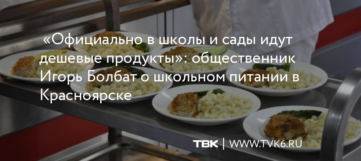 «Официально в школы и сады идут дешевые продукты»: общественник Игорь Болбат о школьном питании в Красноярске