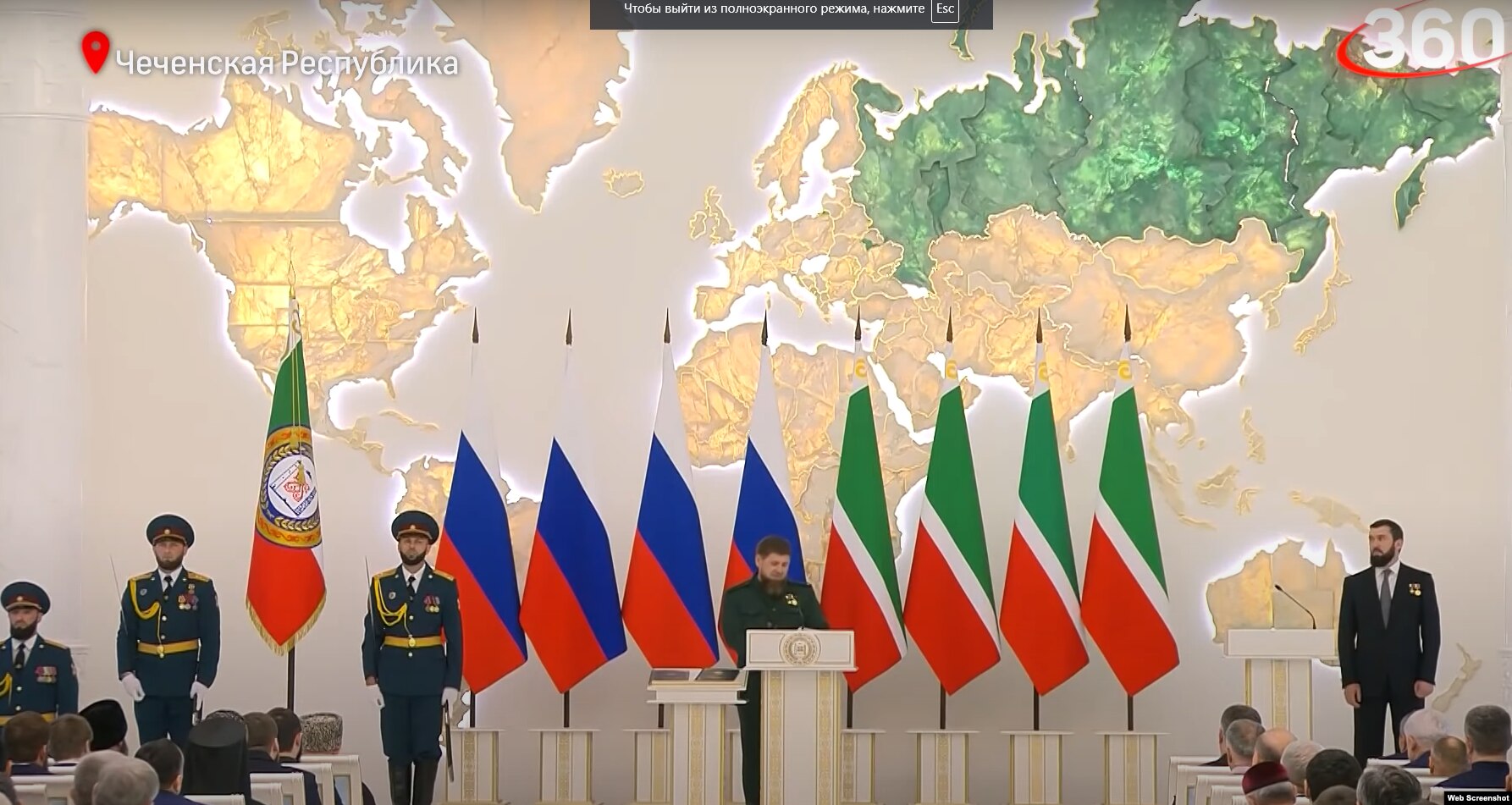 На инаугурации Кадырова заметили карту России с украинским Крымом и японским Сахалином