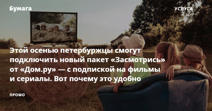Интернет, телевидение и кино — в новом пакете «Засмотрись» от «Дом.ру». Вот почему это удобно