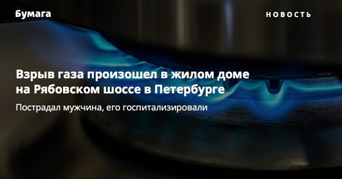 Как сообщили «Бумаге» в пресс-службе «Петербурггаза», информация о происшествии в доме № 57 на Рябовском шоссе поступила в диспетчерскую службу в 11:30. Специалисты, работавшие по этому адресу, выяснили, что хлопок произошел в совмещенном помещении ванной и кухни. В результате в квартире выбило окна. Есть пострадавший — мужчина, которого направили в одну из городских больниц.