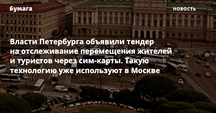 Власти Петербурга объявили тендер на отслеживание перемещения жителей и туристов через сим-карты. Такую технологию уже используют в Москве