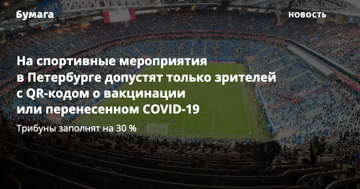 На спортивные мероприятия в Петербурге допустят только зрителей с QR-кодом о вакцинации или перенесенном COVID-19. Трибуны заполнят на 30 %