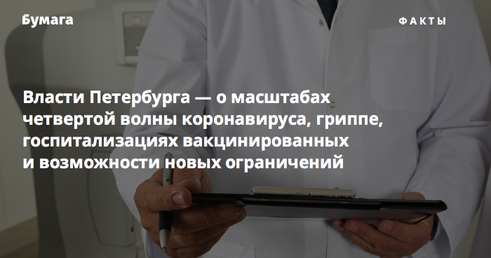 Власти Петербурга — о масштабах четвертой волны коронавируса, гриппе, госпитализациях вакцинированных и возможности новых ограничений