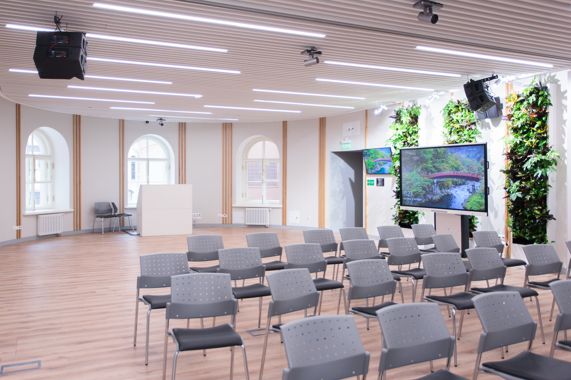 Общая площадь открытых для посетителей помещений обновленной библиотеки — больше 1,7 тысячи квадратных метров, одновременно там могут работать порядка 150 человек. Места для читателей создали в читальных залах и зонах коворкинга, рядом с книжными стеллажами.