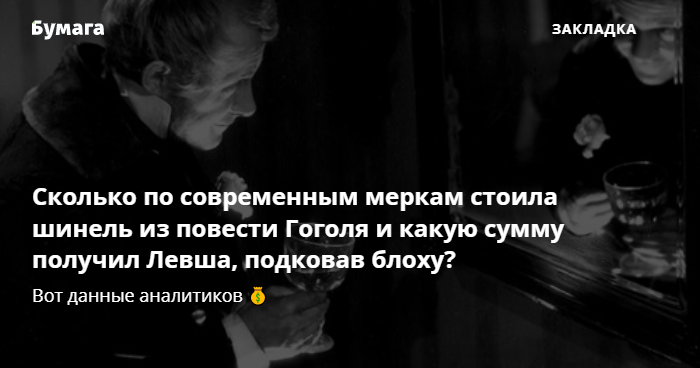 Сколько по современным меркам стоила шинель из повести Гоголя и какую сумму получил Левша, подковав блоху? Вот данные аналитиков 💰
