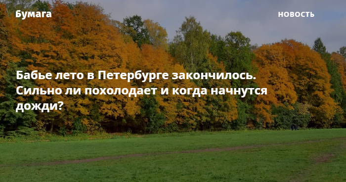 В Петербурге закончилось бабье лето, сообщил «Бумаге» главный синоптик города Александр Колесов. В следующие десять дней температура будет опускаться, но останется сравнительно высокой для октября.