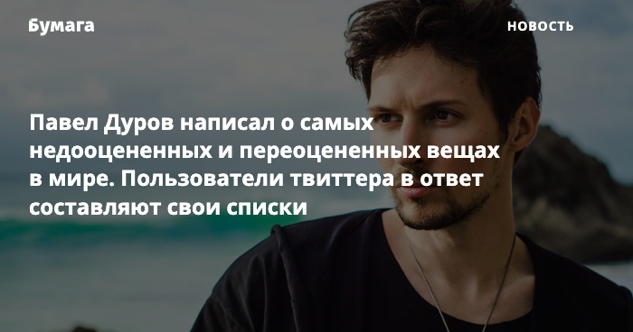 Павел Дуров назвал топ самых переоценённых и недооценённых вещей.