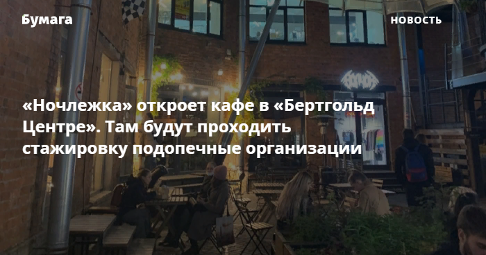 Кафе «Ночлежки» откроется в пространстве «Бертгольд Центр» в Адмиралтейском районе. Об этом рассказал директор благотворительной организации Григорий Свердлин.