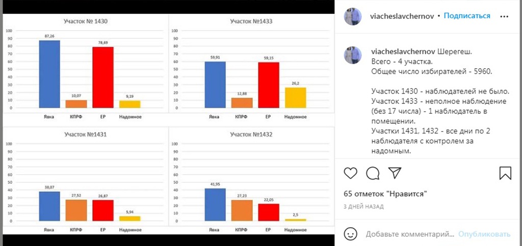 Бизнесмен из Таштагола Вячеслав Чернов был кандидатом в депутаты Госдумы по Новокузнецкому округу на сентябрьских выборах. После кампании он запустил в своем инстаграме документальный сериал о фальсификациях, положив в основу более 50 часов видеозаписей из ТИК Таштагольского района. Он получил их законно, как кандидат.