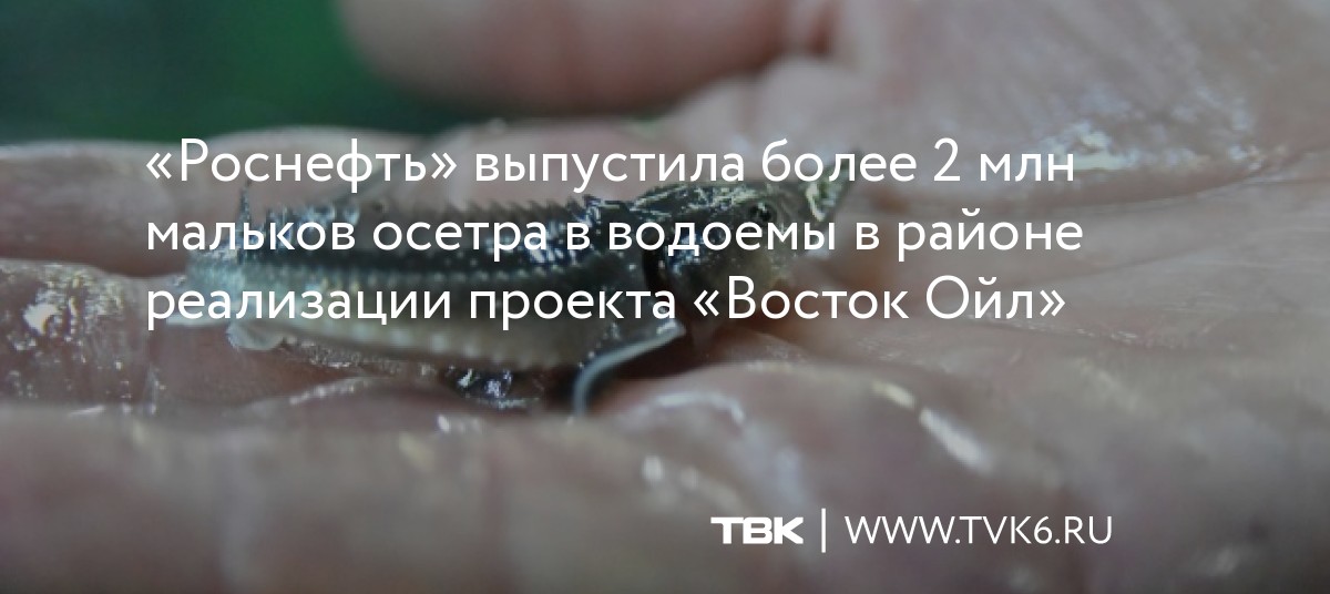 «Роснефть» выпустила более 2 млн мальков осетра в водоемы в районе реализации проекта «Восток Ойл»