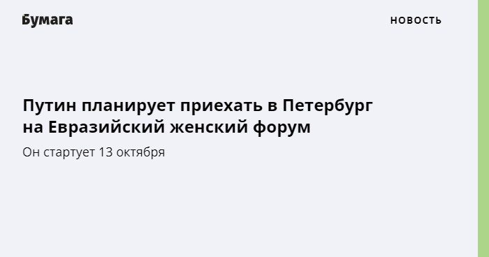 Владимир Путин сообщил, что приедет на Евразийский женский форум, который пройдет в Петербурге с 13 по 15 октября.