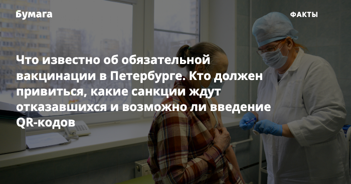 Что известно об обязательной вакцинации в Петербурге. Кто должен привиться, какие санкции ждут отказавшихся и возможно ли введение QR-кодов