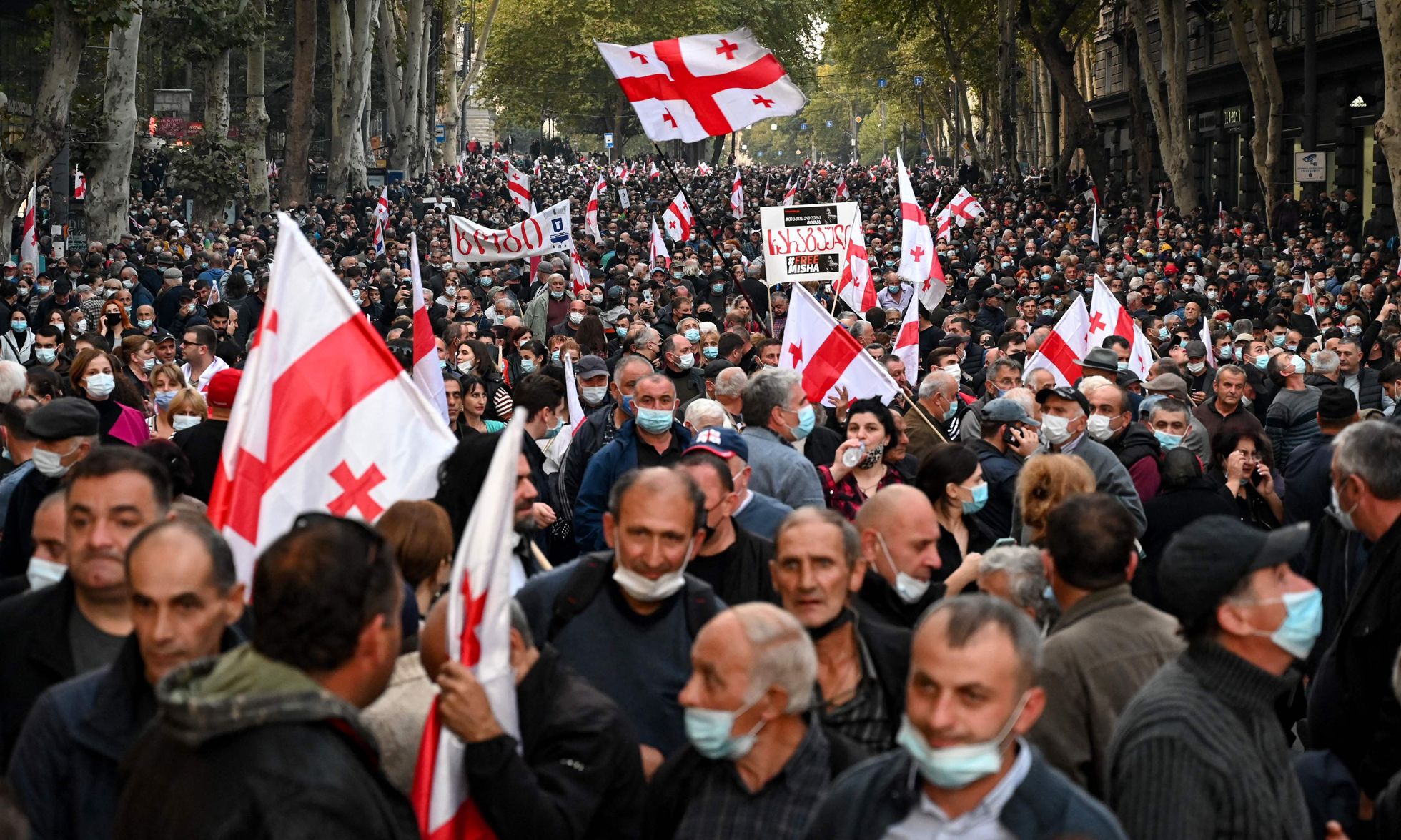 В центре Тбилиси прошел многотысячный митинг за освобождение Михаила Саакашвили. Фотография