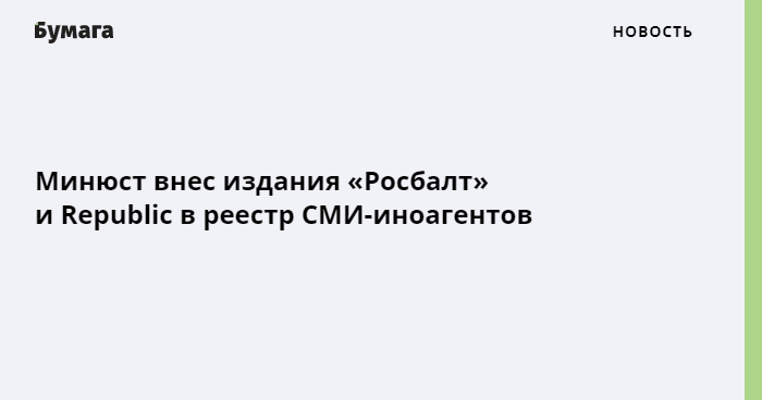 Министерство юстиции РФ внесло издания «Росбалт» и Republic в реестр СМИ, выполняющих функции иностранного агента.
