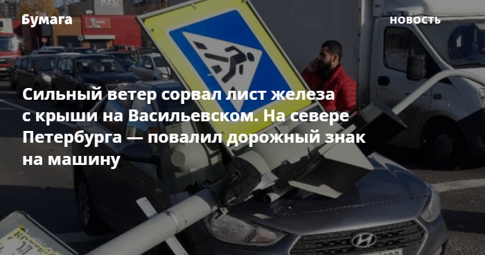 В Петербурге третий день подряд поднимается сильный ветер. 17 октября горожане сообщают о небольших разрушениях на фоне непогоды.