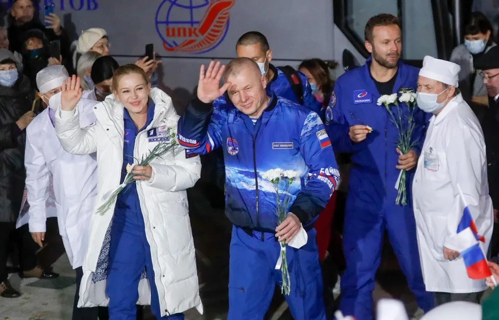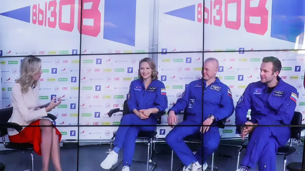 Актриса Юлия Пересильд, режиссер Клим Шипенко и космонавт Олег Новицкий дали первую пресс-конференцию после возвращения из космоса