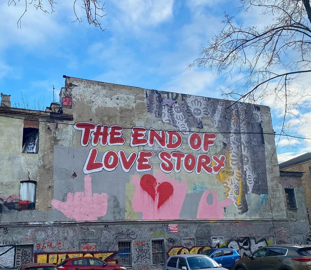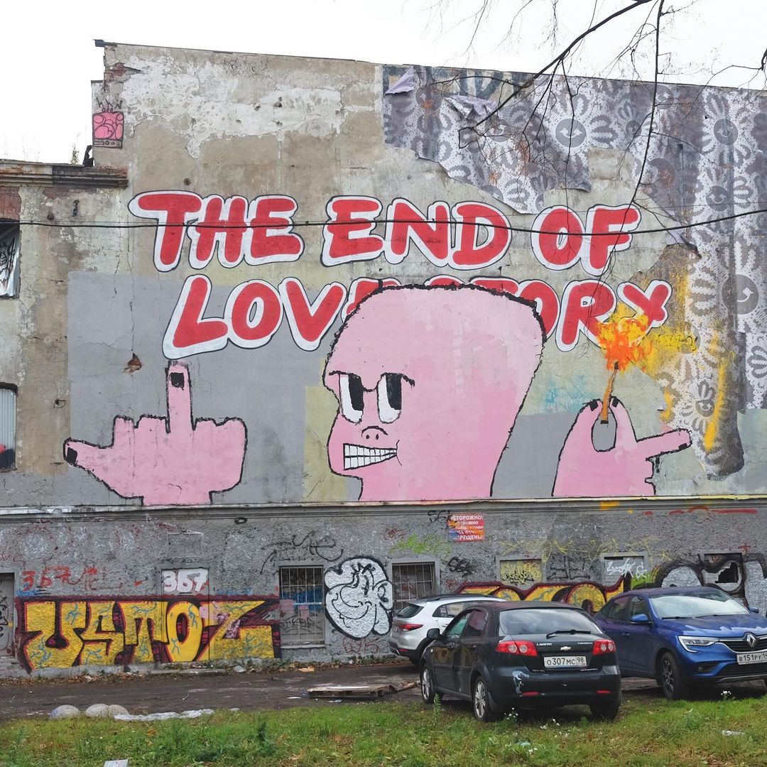 Обновление от 20 октября. В войну двух уличных художников на набережной Обводного канала включилась петербургская команда граффити-райтеров DobroCrew, известная в первую очередь своей работой на Байконуре — в мае 2021 года они разрисовали макет челнока «Буран». В понедельник, 18 октября, художники написали на стене дома культуры: The end of love story, вероятно, иронизируя над конфликтом.