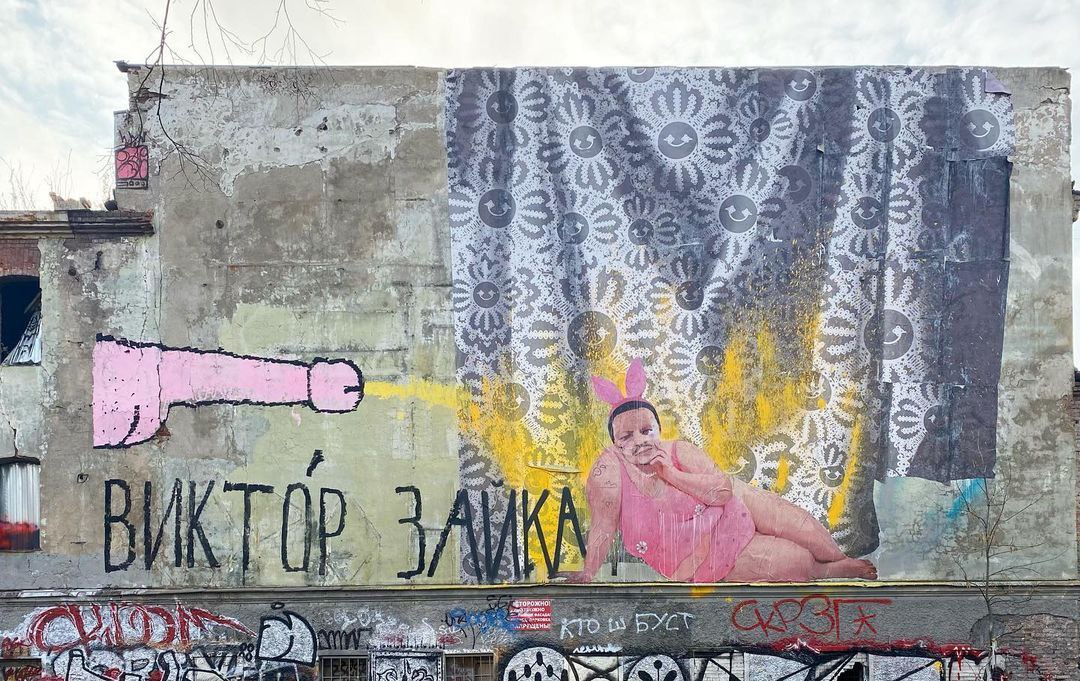 Обновление от 15 октября. В среду, 13 октября, Максим Гамма продолжил эту «войну» и ответил Виктору Забуге. Он нанес на стену дома культуры огромный плакат с изображением Виктора Забуги, одетого в розовые майку и шорты. На портрете, который сделал Гамма, Забуга был также носит ободок с заячьими ушами. Рядом с изображением Гамма написал: «Виктор Зайка».