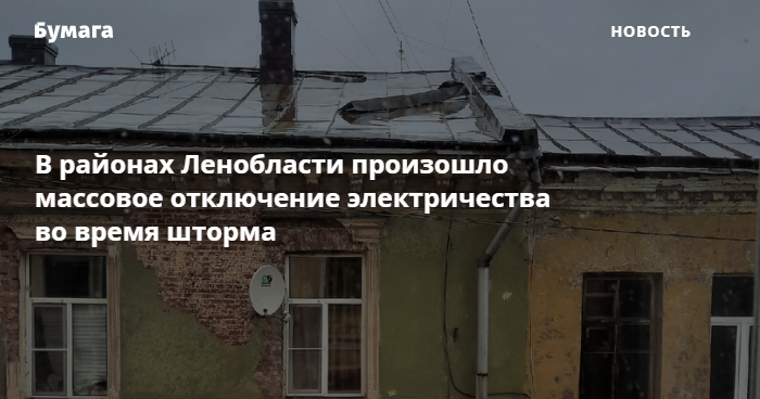 Проблемы с электричеством в некоторых домах на фоне шторма «Хендрик» подтвердили «Бумаге» и в пресс-службе комитета по ТЭК Ленобласти. По данным комитета, аварийно-спасательные работы ведут Северные, Кингисеппские, Гатчинские, Тихвинские и Новоладожские электрические сети. «Россети Ленэнерго» работают в усиленном режиме.