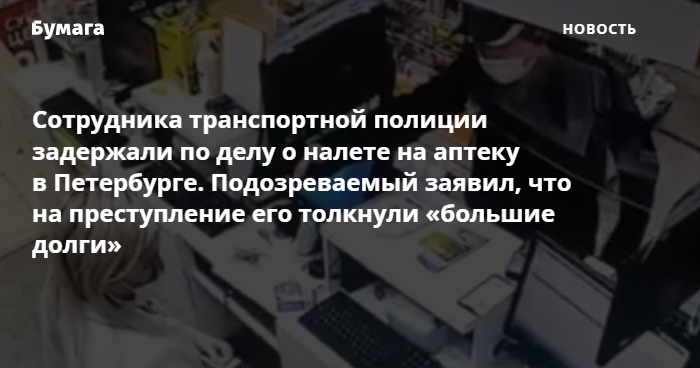 Полицейского задержали за налет на аптеку в Петербурге