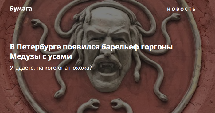 В Петербурге появился барельеф горгоны Медузы с усами. Угадаете, на кого она похожа?