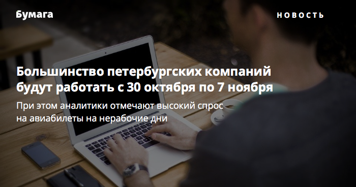 Большинство петербургских компаний будут работать с 30 октября по 7 ноября