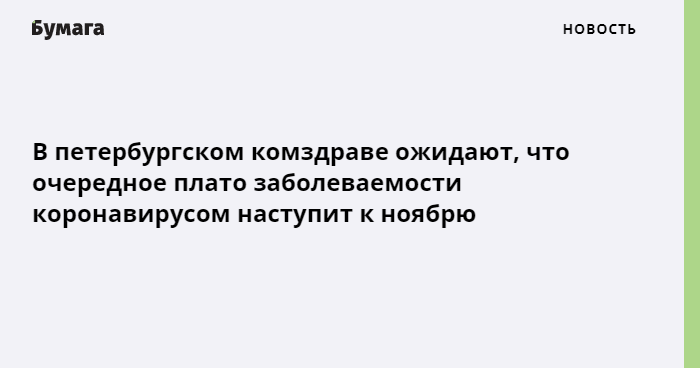 В комитете по здравоохранению полагают, что Петербург выйдет на очередное плато по заболеваемости коронавирусом к ноябрю. Это следует из интервью первого зампредседателя комитета по здравоохранению Андрея Сараны «Петербургскому дневнику».