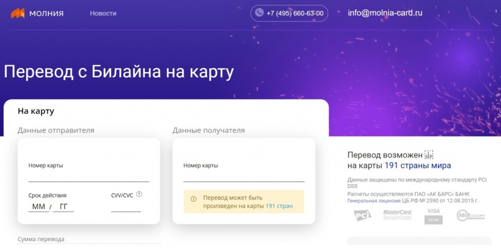 Как быстро и безопасно сделать перевод с Билайна на карту?