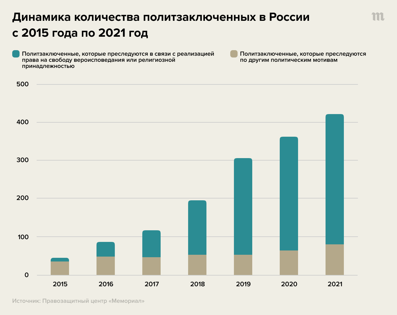 В России сейчас 420 политзаключенных. Это почти в пять раз (!) больше, чем пять лет назад. И скоро мы, похоже, догоним поздний СССР