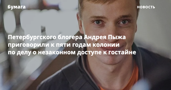 Петербургского блогера Андрея Пыжа приговорили к пяти годам колонии по делу о незаконном доступе к гостайне