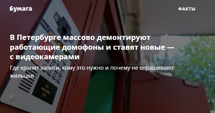 В Петербурге массово демонтируют работающие домофоны и ставят новые — с видеокамерами. Где хранят записи, кому это нужно и почему не спрашивают жильцов