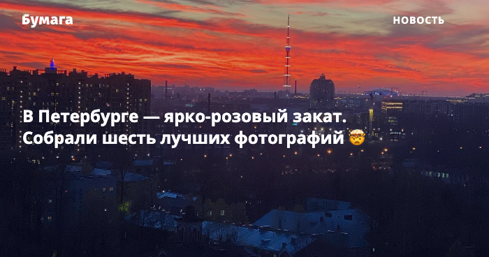 Вечером 29 октября в Петербурге заметили ярко-розовый закат. Солнце зашло в 17:11. Петербуржцы опубликовали фотографии в инстаграме и других социальных сетях.
